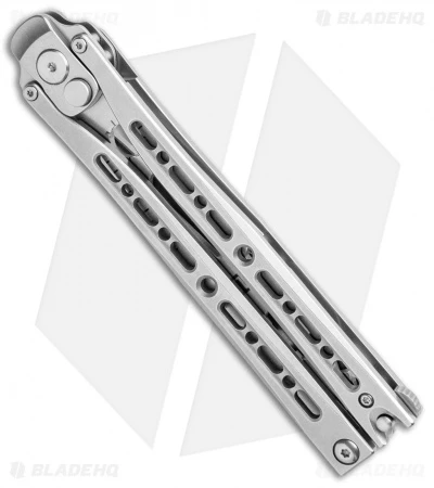 The Kinetic-Tool is truly a one-of-a-kind multi-tool from Artisan Cutlery. Breaking the mold of what a butterfly knife is supposed to be, they incorporated an automatic push-button mechanism as well. The dull trainer blade has a pry bar tip, bottle opener, hex wrench, a 2″ ruler, and a 360-degree protractor. Includes a titanium latch for locking the handle when the blade is open or closed.