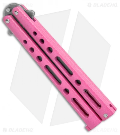 Bear & Son Knives present the 5″ Pink SW Butterfly Knife with a single tang pin. This knife features a tough pink epoxy powder coated handle that gives this knife a fun and flirty look. The handles feature a skeletonized design to reduce weight for better blade control. This is a fantastic butterfly knife at a ‘won’t break the bank’ price and is made right here in the USA.