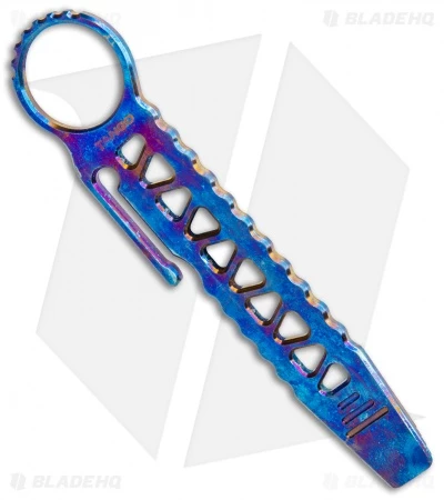 The Tango Bar, designed by Peter Fegan, is a versatile everyday and tactical tool. Its major function is a pry tool, but it functions well as a kubotan and a screwdriver. It comes with a clip designed to fit around a pocket seam or MOLLE strap, and a Karambit-style hole. Made of titanium.