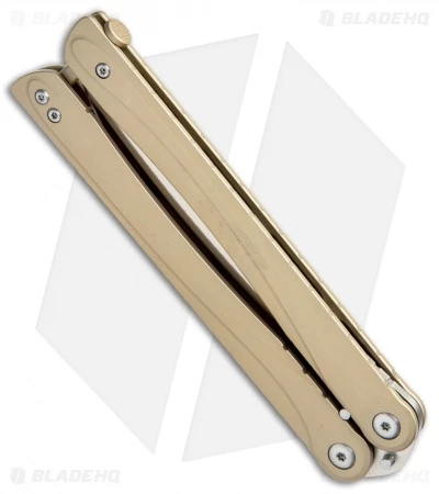 Jason’s first butterfly knife, the Brous Blades B3, stays true to the traditional balisong, but he added a dash of his own style to the mix, which is especially evident in the recurved, modified tanto blade. This model has burnt bronze cerakote coated handles and a high satin finished blade.