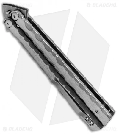 This custom balisong from Jim Burke is built with a premium stainless steel recurve blade in an acid stonewash finish. The handles are made from titanium with sculpted edges and a finish to match the blade. Includes a latch and removable pocket clip. Jim Burke’s knives are the real deal, sporting hard use materials, solid construction, and appealing designs that feel at home in hand.