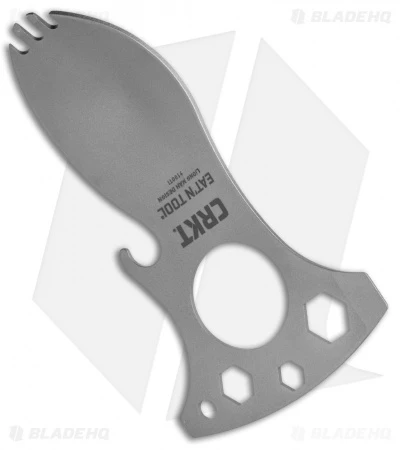 There is an ergonomic spoon and a short-tined fork. But in addition, there’s a handy bottle opener on one side. The right side of the handle is ground to provide an emergency screwdriver blade, which will also work as a pry for opening canisters.