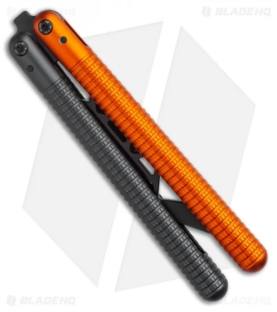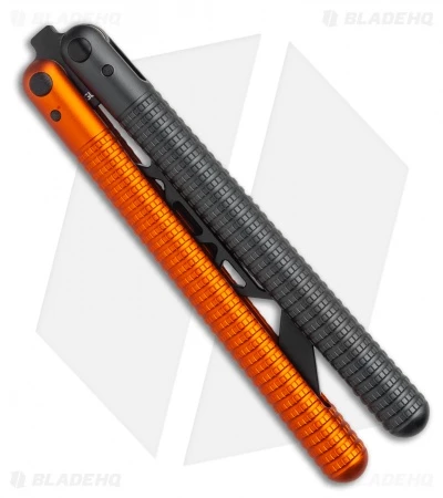 This SAHARA balisong trainer features a black blade and desert dust, black and orange handles.