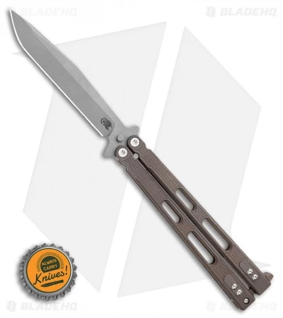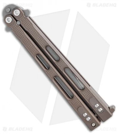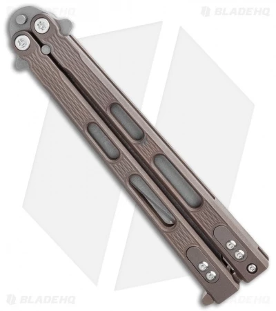 This Blade HQ Exclusive Nieves model is outfitted with a battle bronze titanium handle and a working finished spanto blade.