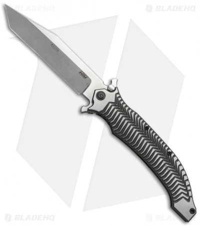 The ADX 5.5 Tanto spring assisted folder from Darrel Ralph is a big knife and was featured in the big screen hit The Expendables. This knife has a 5.5″ two-tone finished Tanto blade, made from premium S35VN steel. The black/satin finished titanium handle is large, but is designed to fit a wide range of hands. The back of the frame has a built in skull cracker. The tip-down pocket clip is a low carry style. The AXD 5.5 knife comes in a padded black nylon pouch.