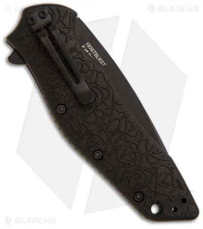 The Kuro knife is an assisted opening tactical folder for quick blade deployment when it matters. The word “Kuro” is Japanese for black, an apt name for a stealthy knife. This knife has a titanium carbo-nitride coated 8CrMoV steel tanto blade with a partially serrated edge. The glass-filled nylon handle has steel liners and lock tab. Reversible pocket clip and lanyard hole.