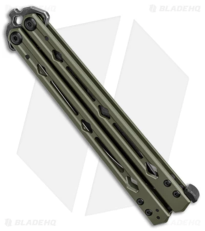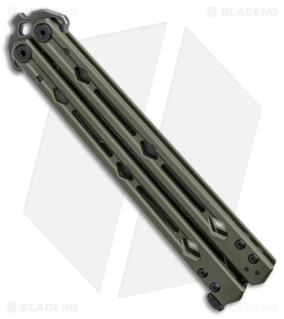 - OD green finished stainless steel handles with a bead-blasted texture.