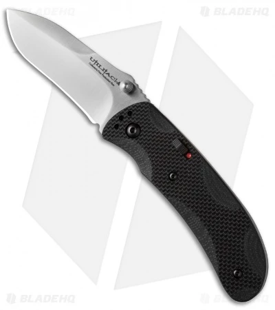 New for 2015 is the Utilitac I, an assisted opening knife that’s based on the popular Joe Pardue design. It’s everything you love about the classic design, but now you’ll enjoy a bit more kick upon pushing the thumb stud. The modified drop point blade has a swedge at top, giving it a spear point style aesthetic. This model has a satin finished blade. Black G-10 scales have thoughtfully placed scallops and a grippy texture. On the front side, a sliding safety keeps the blade closed and a reversible pocket clip makes this an obvious choice for everyday carry.
