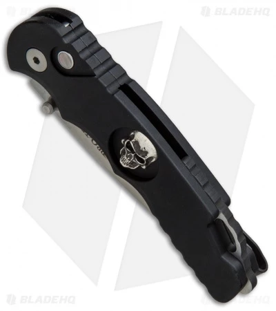 This TR-5 model has a black anodized aluminum handle featuring a Shaw Sterling Skull and a black lip pearl button. It has a black back spacer/lanyard attachment, and a deep carry tip-up pocket clip. The blade is stonewashed and outfitted with a thumb stud opener. The plunge lock enables safe use and provides solid lockup. Pro-Tech’s TR-5 is an impressive addition to their lineup and boasts their longstanding build-quality and performance.