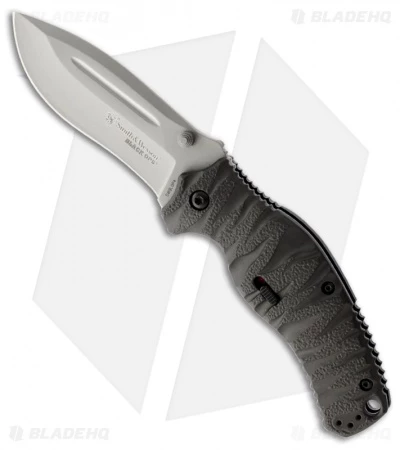 The Black Ops 4 series is part of Smith & Wesson’s M.A.G.I.C. assisted opening knife line. Just a small nudge of the flipper or thumbstud opens the knife. The action on this knife is great and it locks up tight via liner lock. To prevent unintended firing, there is a safety on the handle. The aluminum scales have grooves and a light texture. The Black Ops blade is bead blast finished 4034 stainless steel with thumb notches on the spine. Comes with a pocket clip and lanyard hole.