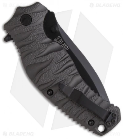 The Black Ops 4 series is part of Smith & Wesson’s M.A.G.I.C. assisted opening knife line. Just a small nudge of the flipper or thumbstud opens the knife. The action on this knife is great and it locks up tight via liner lock. To prevent unintended firing, there is a safety on the handle. The aluminum scales have grooves and a light texture. The Black Ops blade is black finished 4034 stainless steel with thumb notches on the spine. Comes with a pocket clip and lanyard hole.
