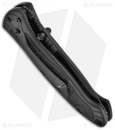 Black T6061 aluminum handle with grip inserts. Stainless 4034 plain blade with dual thumb-studs and “auto” flipper. Includes pocket clip and safety.