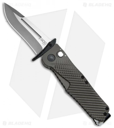 Shake it up with the new Quake knife from SOG. This folder doesn’t fit the mold of most any knife you’ve seen before. The Quake is distinguished by its folding crossguard, which is used to activate the SAT 2 (SOG Assisted Technology) mechanism, much like a thumb stud. Action on the Quake knife is quite powerful and gives you the benefit of speed when it matters.