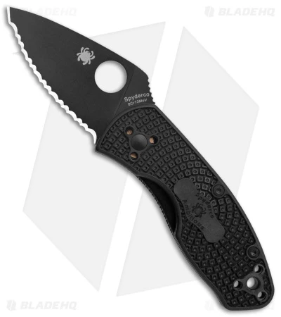 - Black-finished 8Cr13MoV stainless steel blade with serrations.