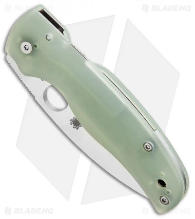 We’ve tweaked the standard Shaman configuration to create a unique addition to our exclusive Spyderco lineup. The standard blade has been upgraded with premium CPM-M4 steel, a high-speed steel with excellent toughness and edge retention qualities. The Shaman is a knife that begs to be used, and the toughness of a fantastic tool steel like CPM-M4, compliments this knife extremely well. The standard black G-10 handle has been replaced with translucent green natural G-10 scales.
