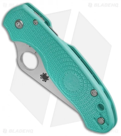 - Textured teal FRN handle with satin hardware.