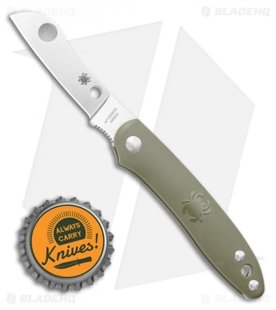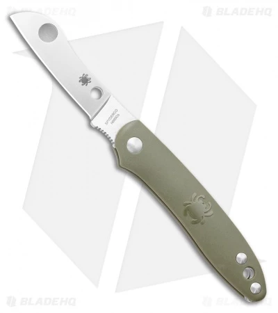 Spyderco’s Roadie is essentially an evolved version of a penknife for the modern man. It has a practical sheepsfoot style blade with a trademarked Double Dent opener for fingernail-free two-handed opening. The handle is contoured, olive green fiberglass-reinforced nylon with a slip joint mechanism. An index-finger choil on the blade aids to prevent accidental closure and facilitates precision cuts.