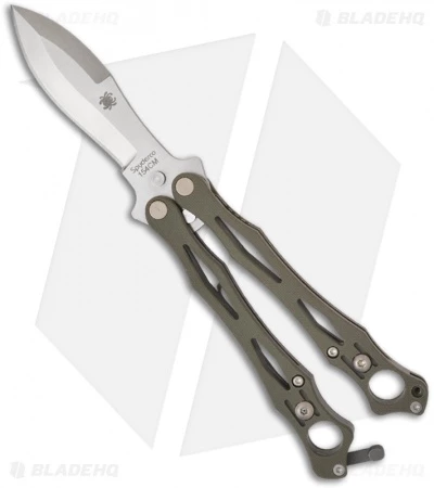 The Spyderco Smallfly butterfly knife features a unique balisong design for high performance flipping. This cool butterfly knife features a 3″ plain edge flat ground 154CM stainless blade. The handles are skeletonized stainless steel with foliage green G-10 overlays. A versatile, 4 way reversible wire pocket clip, allows for multiple carry options. The latch is spring loaded for quick opening. Screw together construction for easy adjustment and cleaning.